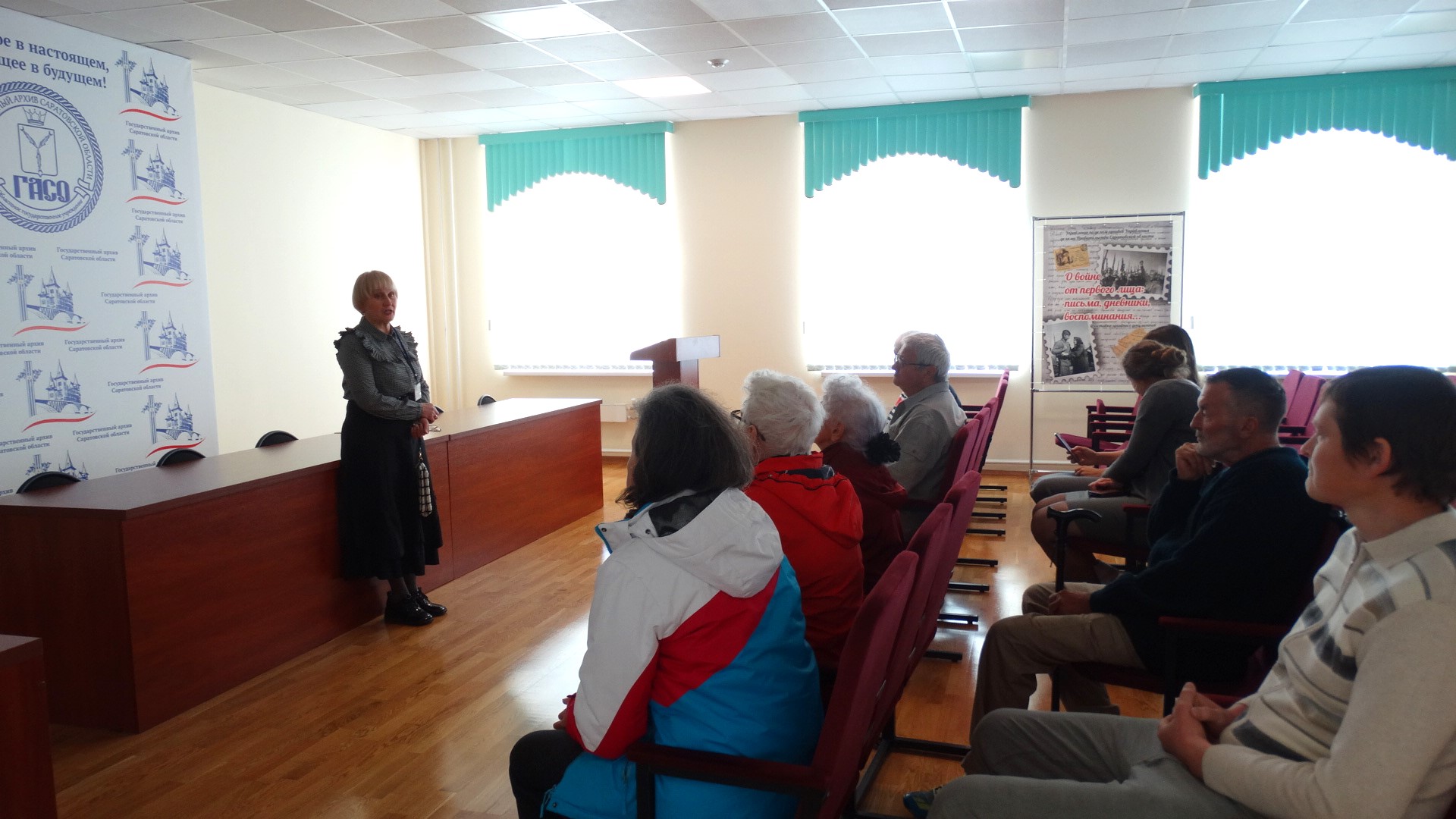 После лекции посетители прослушали подробный рассказ об эвакуации в период войны с оккупированных территорий страны в Саратовскую область промышленных предприятий, культурно-массовых учреждений, детских домов.